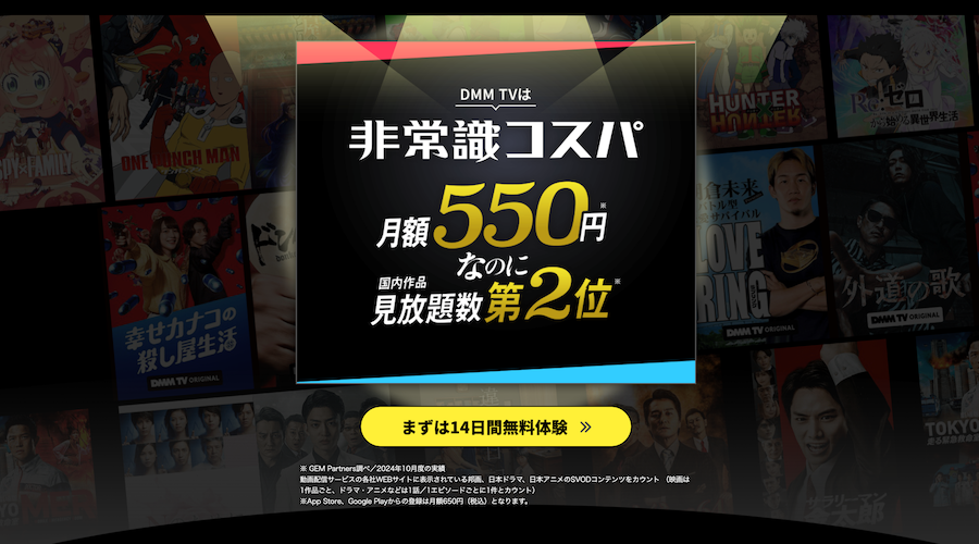 月額550円という低価格でありながら、アニメだけでなく映画、ドラマ、バラエティまで幅広いジャンルが見放題となっており、「アニメ・エンタメ、コスパ最強」のキャッチコピー通りの高いコストパフォーマンスを実現しています。